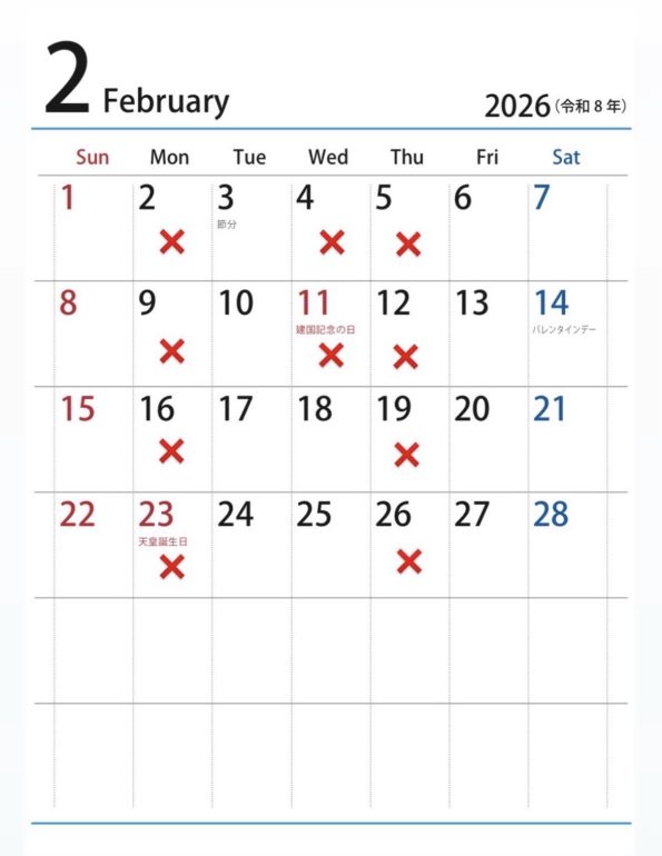 2月休診日のお知らせ